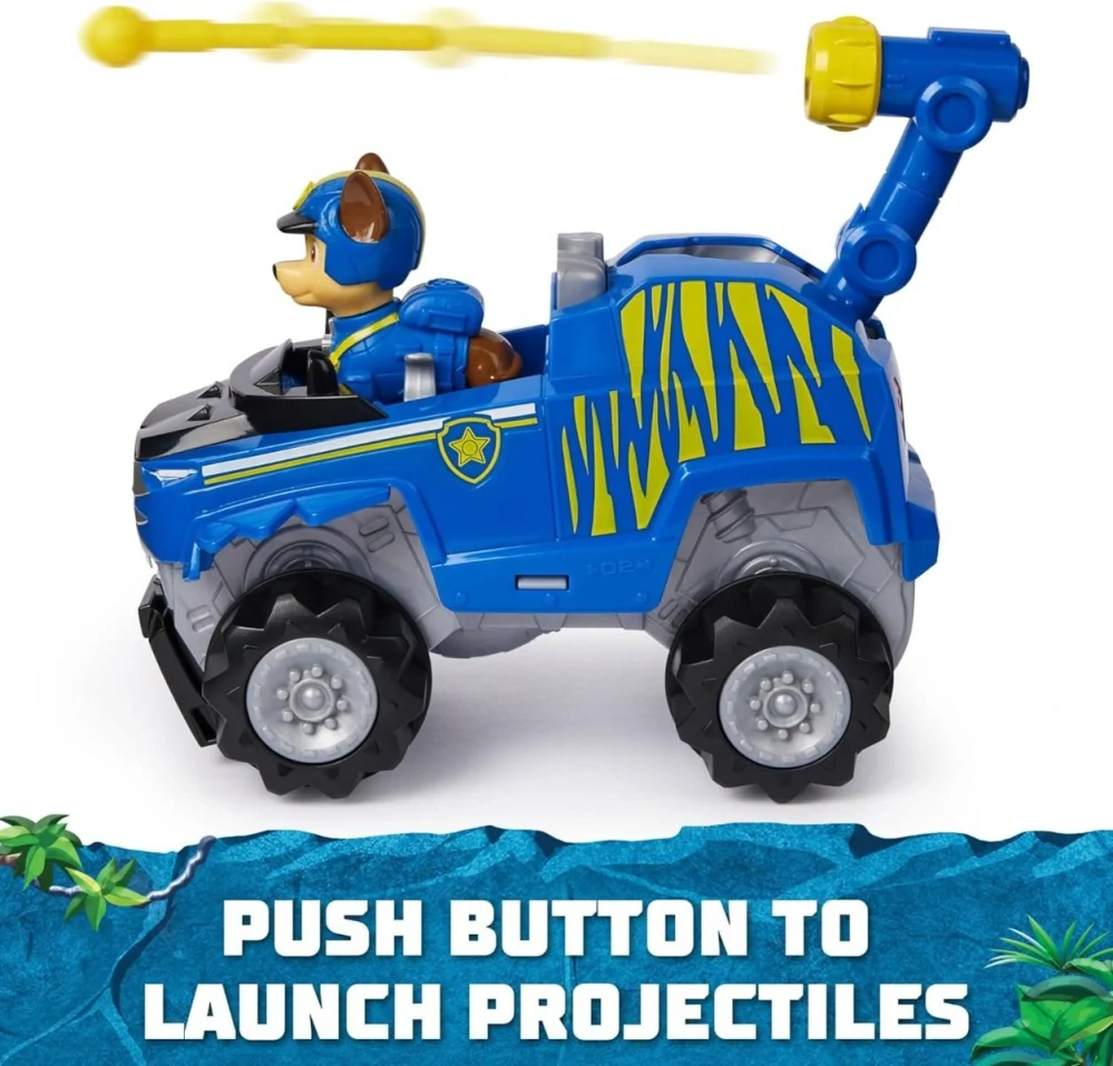 Vaše oblíbené postavy z kresleného Vozidla Tlapkové patroly na téma džungle s jedinečnou proměnou a projektily podle předlohy se vydejte na pozemní misi džunglí.