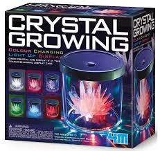 Tato sada umožňuje dětem pěstovat si vlastní krystaly a vystavovat je v LED pouzdře, které mění barvu.